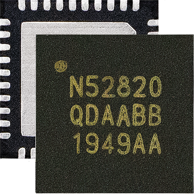nRF52820の設計サンプルは現在入手可能です。SoCのパッケージはGPIO 18本を搭載した5x5mm QFN40で、NordicのnRF52833 SoCとの間にドロップイン互換性があります。